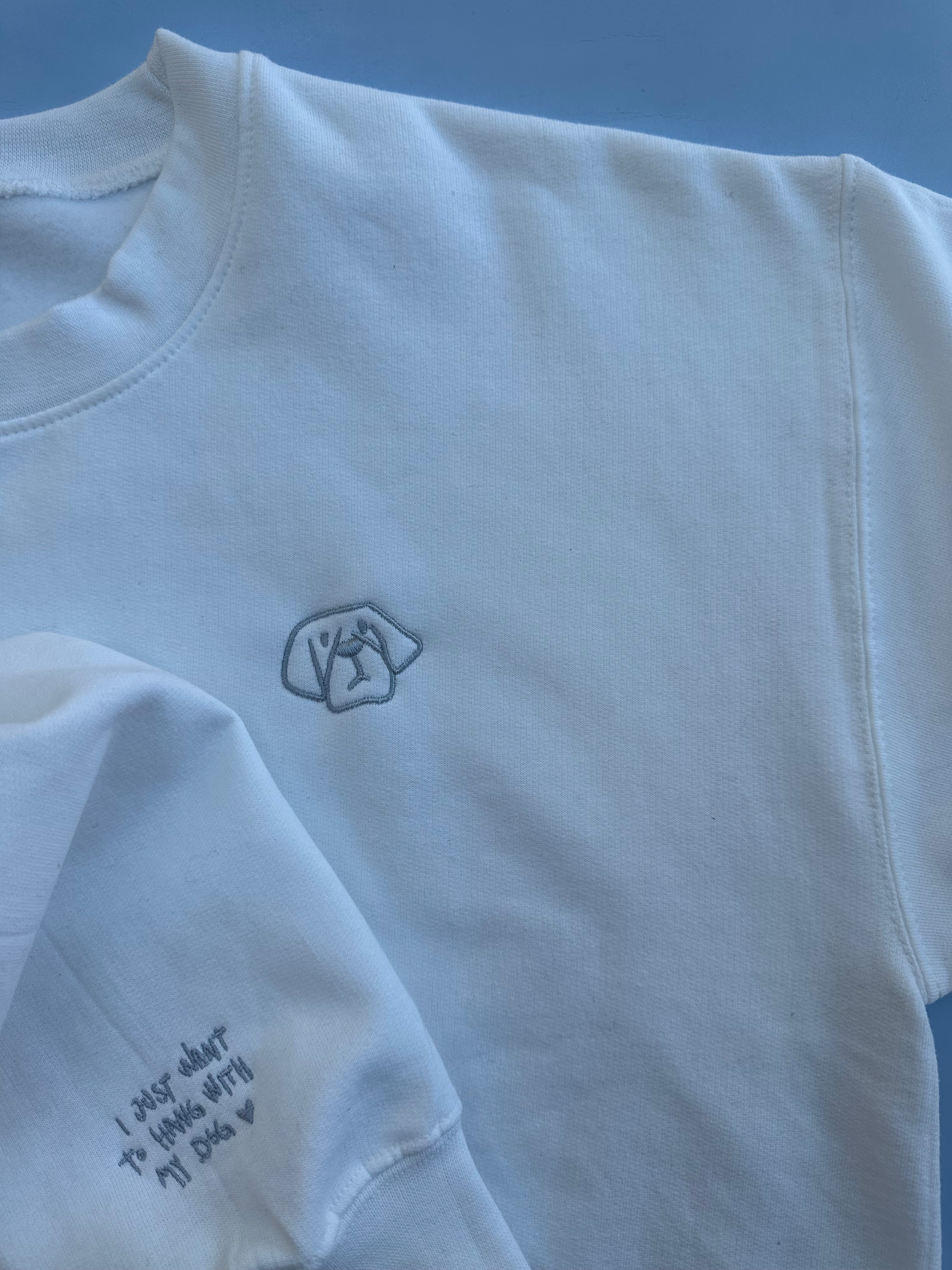 På brystet finder du en broderet hund og på ærmet, en brodering med teksten "I just want to hang with my dog" - For ærligt, så vil de fleste hundeejere faktisk bare helst være blevet hjemme ved menneskets bedste ven.